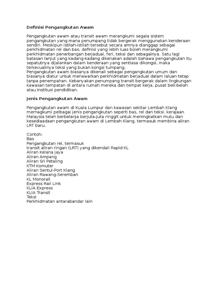 Definisi Pengangkutan Awam Pdf