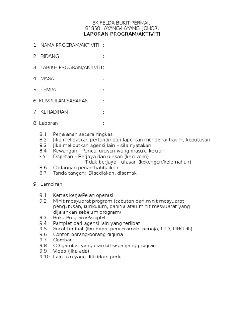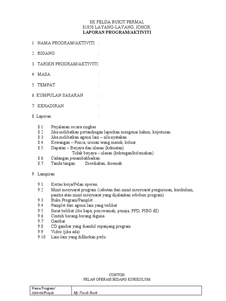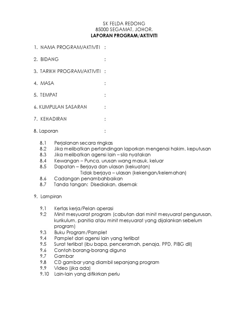 Format Laporan Aktiviti Kokurikulum Pdf